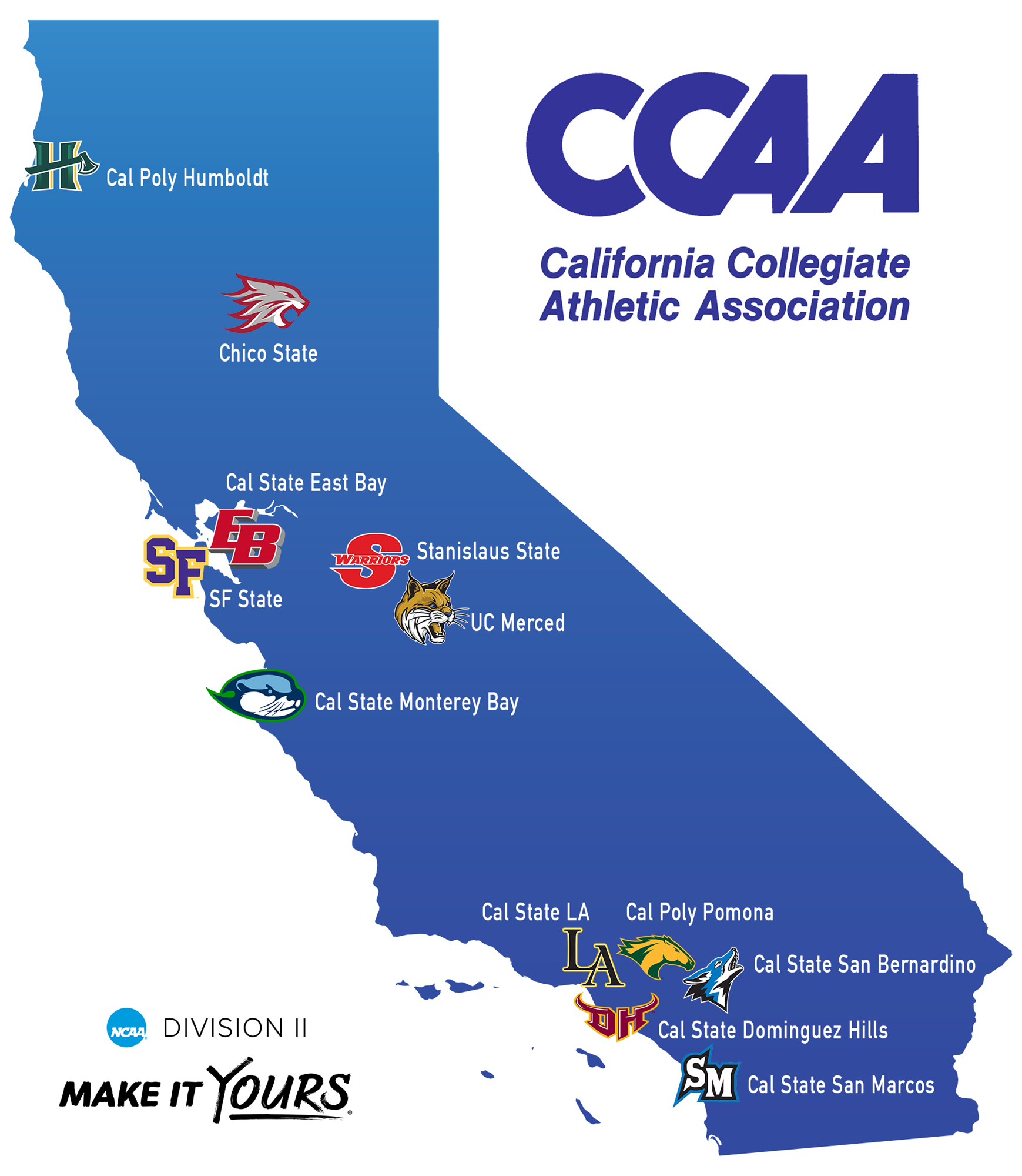 The 12-member league is home to some of the nation's finest NCAA Division II athletic programs in Cal Poly Humboldt, Cal Poly Pomona, Cal State Dominguez Hills, Cal State East Bay, Cal State LA, Cal State Monterey Bay, Cal State San Bernardino, Cal State San Marcos, Chico State, San Francisco State, Stanislaus State and UC Merced.